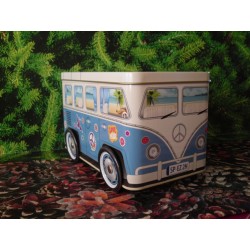 Diese Blechdose ist ca 20 x 12 x 10 cm groß, hat einen Deckel zum abnehmen und fahren kann sie auch, denn die Räder sind beweglich. Bunt bedruckt steht sie da und wartet auf leckere Kekse oder Buntstifte, Kleinkram wie Knöpfe oder Perlen, Nägel, Schrauben oder Visitenkarten.