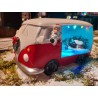 Man braucht 3 Batterien Größe AA - und schon fangen die Eisläufer an ihre Runden zu drehen. Lämpchen beleuchten die Schneelandschaft und das alles in einem Bulli !