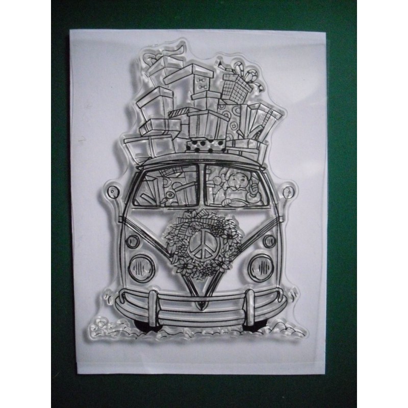 Der Bulli ist ca 8 x 12 cm groß und gereinigt wird nach dem stempeln laut benutzter Stempelfarbe.